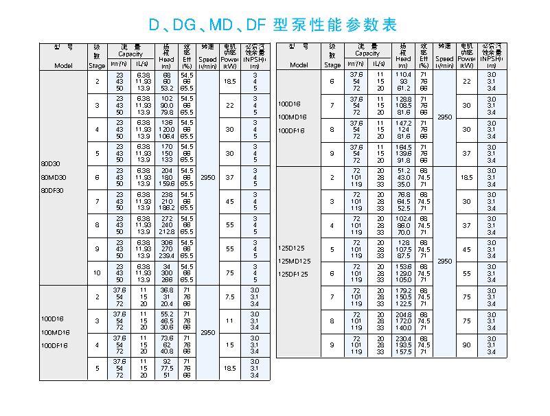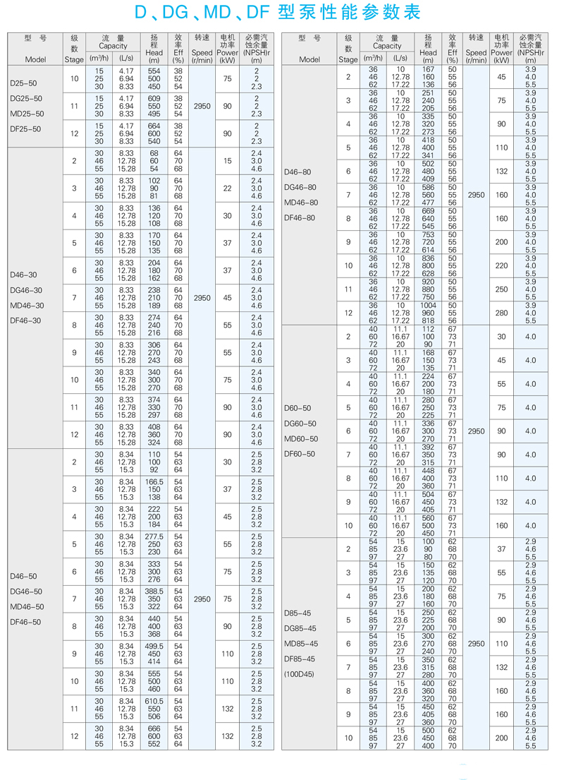 N型冷凝水泵主要供火力發(fā)電廠輸送冷凝水之用,亦可用在介質(zhì)與冷凝水相似的其他地方。本泵有較好的吸入性能?!?00N130和150N110型泵可輸送120℃以內(nèi)的液體,其他泵輸送液溫不能超過80℃?! ?00N130和150N110型泵分別在填料函體和填料壓蓋處通入冷卻水后可作流水泵用。 參數(shù)范圍 流量范圍:8~120m3/h 揚(yáng)程范圍:38~143
